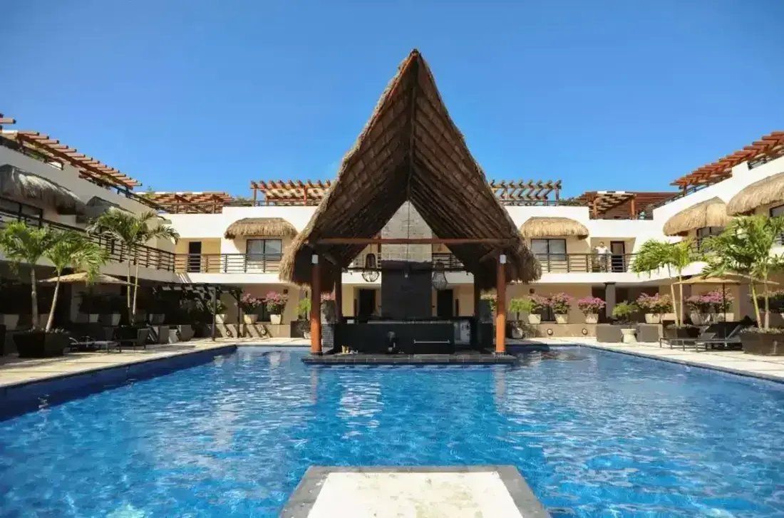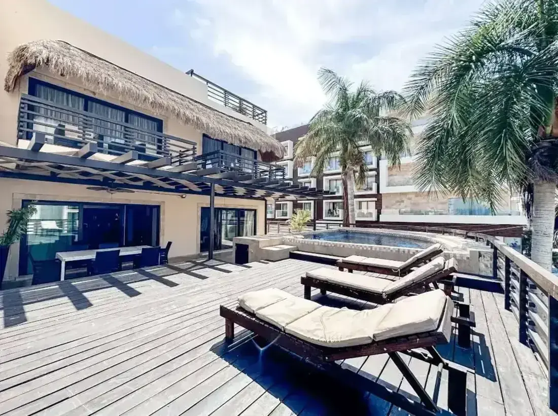 Experience the perfect fusion of Thai-Balinese elegance and Caribbean luxury at Aldea Thai Private Pool Playa del Carmen, a signature apartment in one of Playa del Carmen’s most desirable beachfront locations. Just 50 steps from the glamorous Mamitas and Kool Beach Clubs, this upscale residence blends sophisticated design with resort-style amenities — offering a private pool terrace, grand entrance, and access to a stunning infinity pool with bar and lounge chairs.