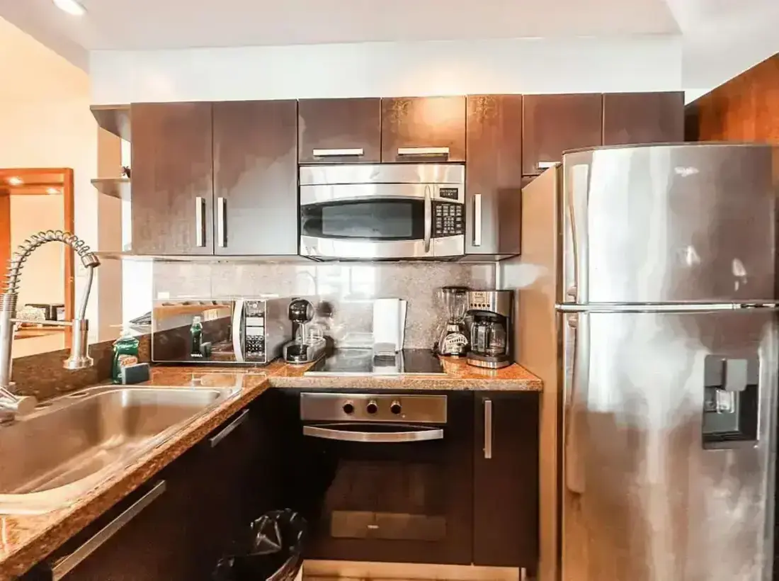 - Fully Equipped Gourmet Kitchen & 55″ Smart HD TV