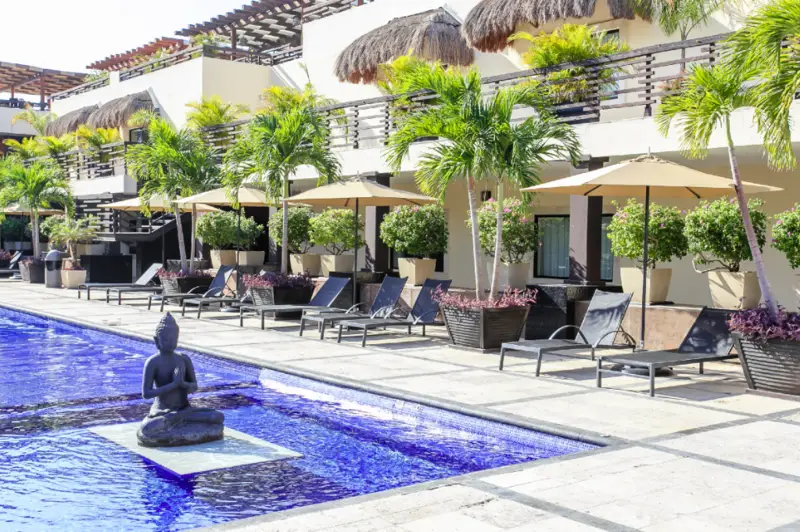Designed for elegance and comfort, Aldea Thai offers the sophistication of Thai-Balinese style combined with the luxury of exclusive destinations. Located next to Mamitas and Kool Beach Clubs, in one of the most desirable areas of Playa del Carmen. It features a spectacular Thai-Balinese style infinity pool.