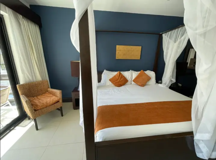 – 1500-thread-count ultra-soft sheets – High-quality duvets – Ceiling fans – Air conditioning – Safe box – 1 King-size bed