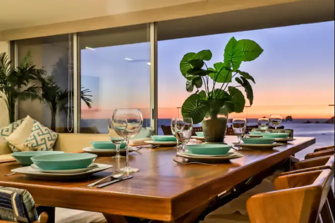 The three well-appointed bedrooms provide a tranquil haven for rest and rejuvenation. Each room features plush bedding, ample storage space, and en-suite bathrooms, ensuring privacy and comfort for all guests. Wake up to the soothing sound of waves crashing on the shore and step out onto the private balcony to savor the panoramic views of the sparkling Pacific Ocean.