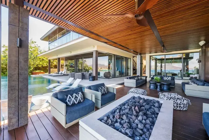 Multiple terraces and oceanfront fire pits for evening gatherings