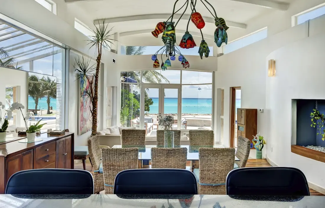 The villa’s open layout and thoughtful design create a seamless connection between indoor elegance and outdoor paradise. Floor-to-ceiling windows and glass sliders invite refreshing sea breezes into every space, while the private pool, alfresco dining, and beachfront access let you live right on the edge of the Caribbean.