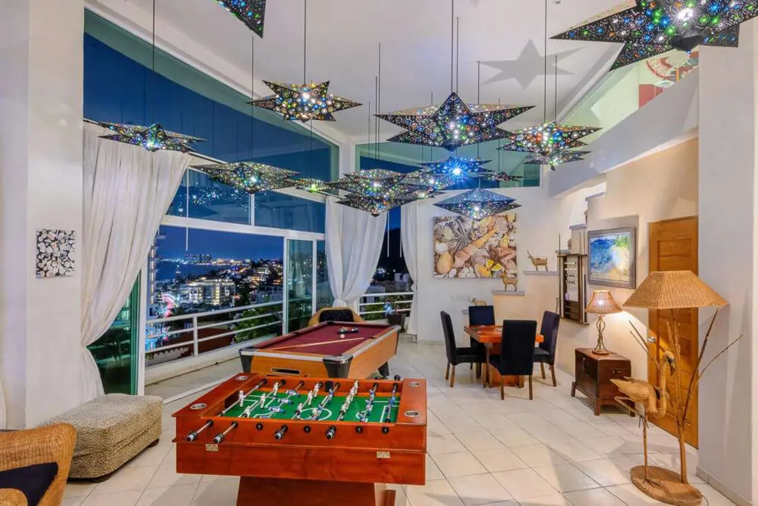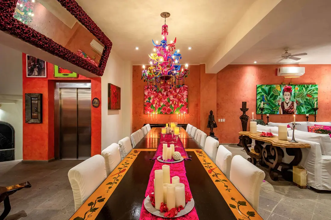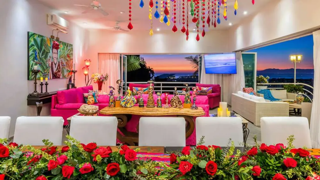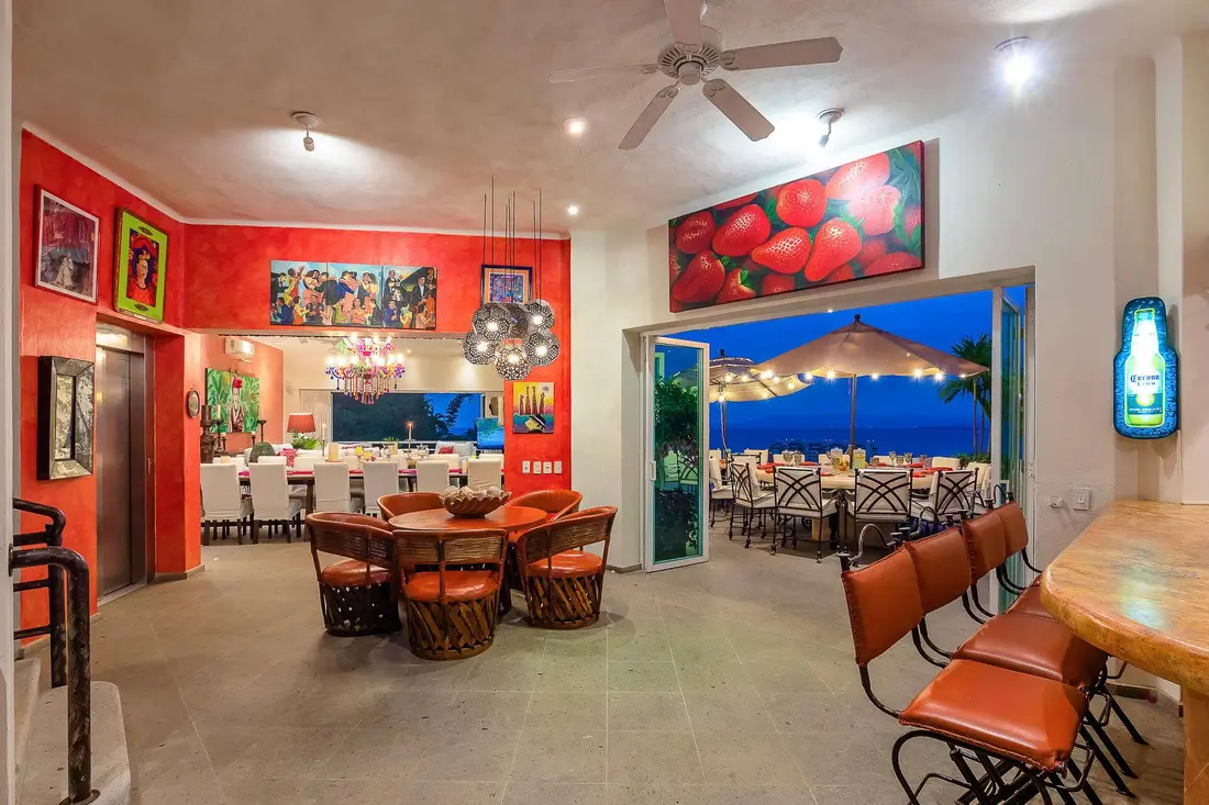 This extraordinary estate offers up to 14 spacious and uniquely themed bedrooms across seven levels, accommodating up to 34 guests in opulent comfort. Each suite blends contemporary luxury with vibrant Mexican influences, ensuring every guest enjoys a memorable stay. The villa’s open terraces, infinity pool, and panoramic views create a seamless connection to the beauty of Banderas Bay and the Sierra Madre Mountains.