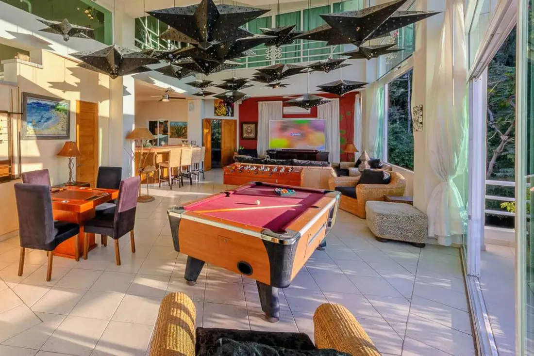 - Stargazer Lounge – Entertainment area with colored lights, pool table, karaoke machine, table soccer, long bar