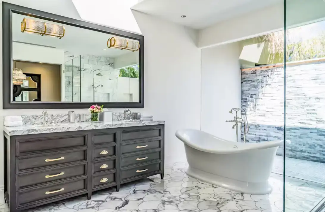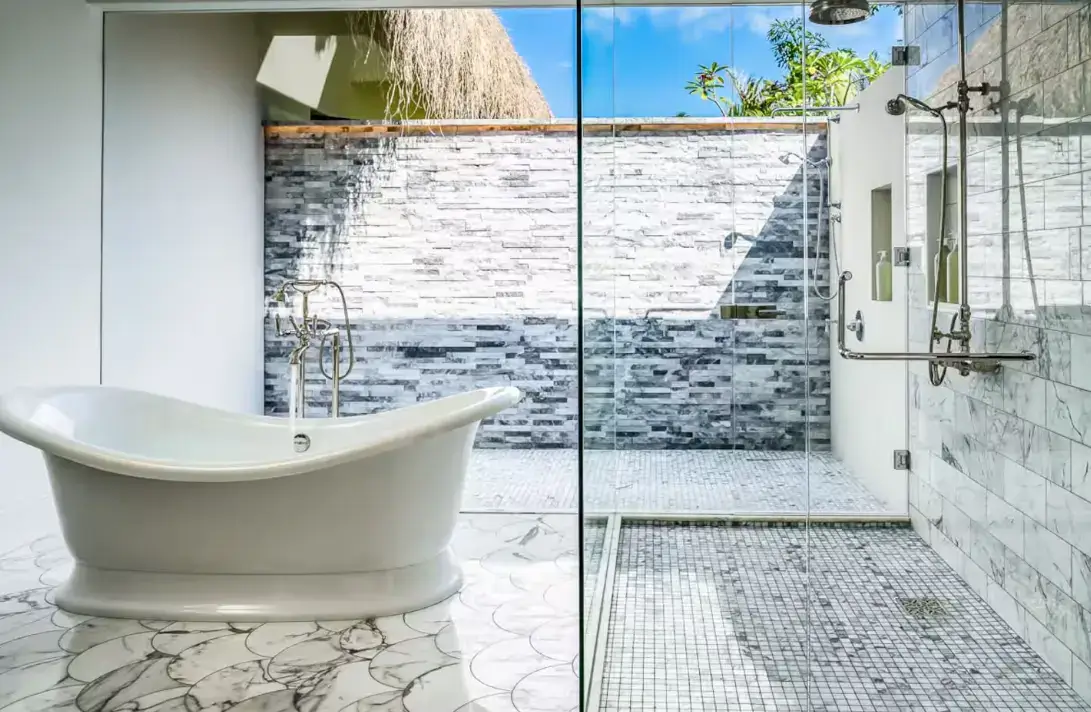 En-suite bathroom with indoor/outdoor showers