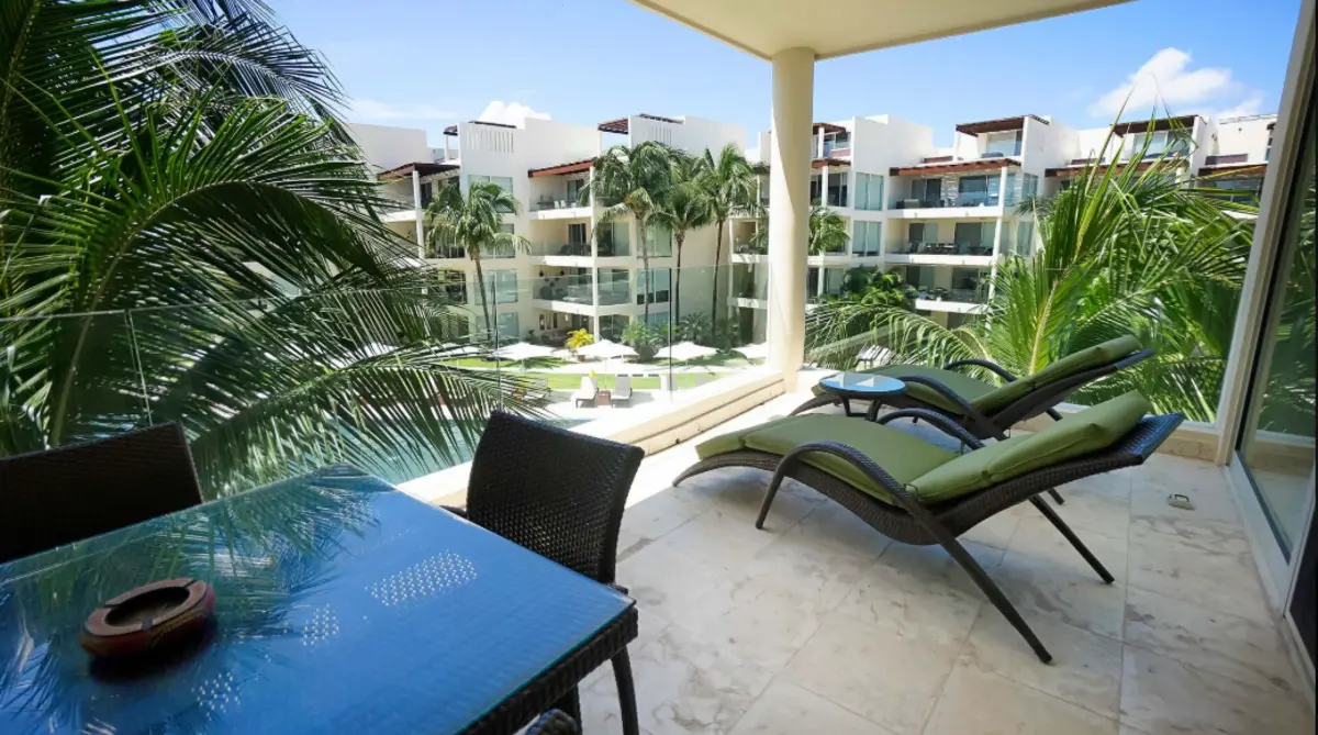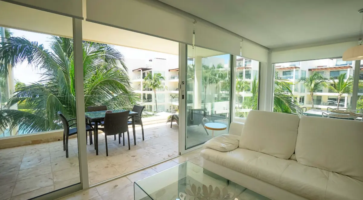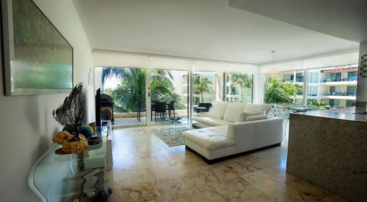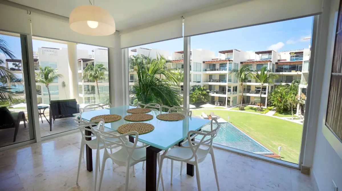 Welcome to Elements 216 Playa del Carmen, a radiant third-story vacation condo that captures the true essence of paradise. Overlooking lush tropical greenery and the property’s signature no-edge pool, this superb retreat welcomes you with swaying coconut palms, blue-green Caribbean sea views, and the warm Mexican sun pouring through an entire wall-and-a-half of floor-to-ceiling windows.