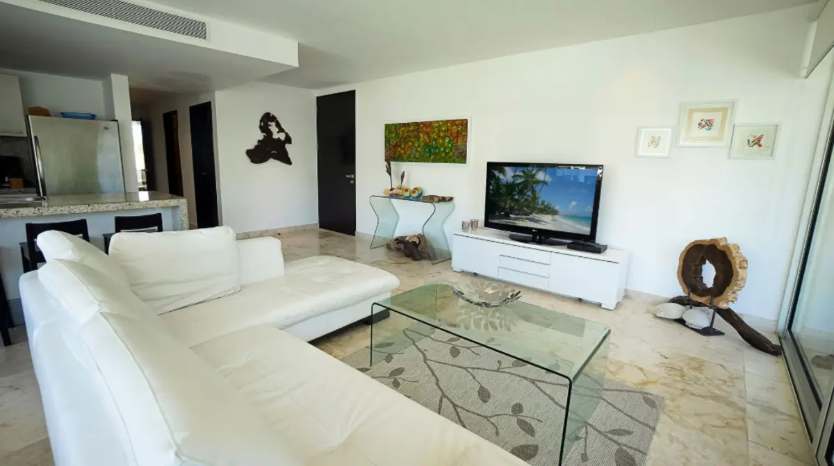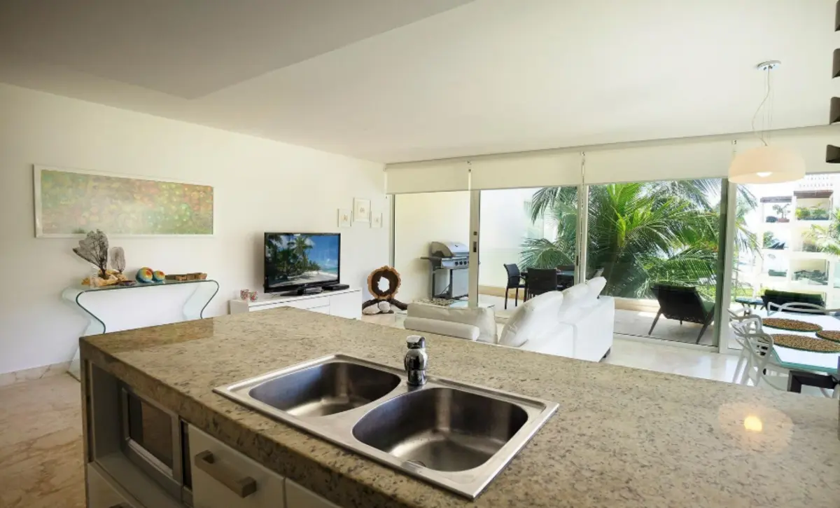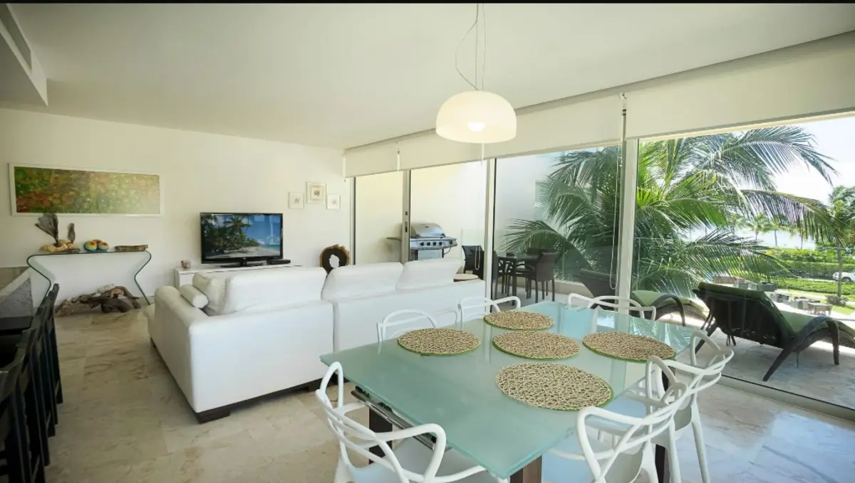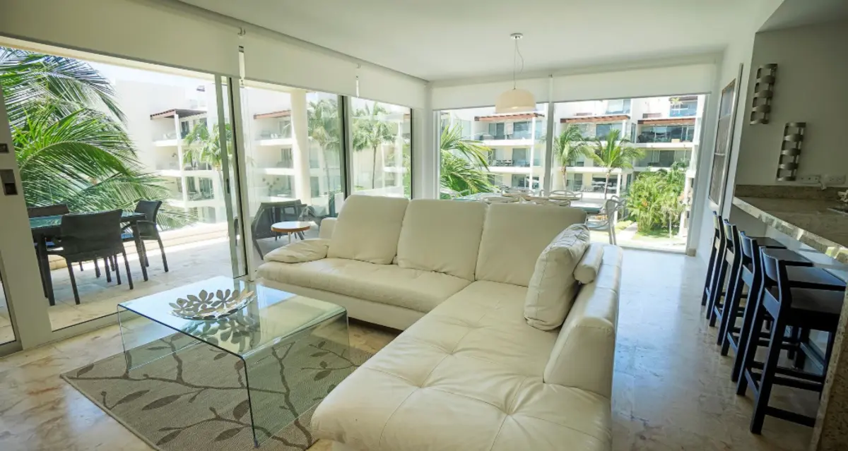 Welcome to Elements 216 Playa del Carmen, a radiant third-story vacation condo that captures the true essence of paradise. Overlooking lush tropical greenery and the property’s signature no-edge pool, this superb retreat welcomes you with swaying coconut palms, blue-green Caribbean sea views, and the warm Mexican sun pouring through an entire wall-and-a-half of floor-to-ceiling windows.