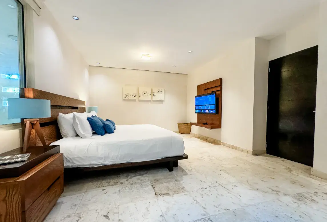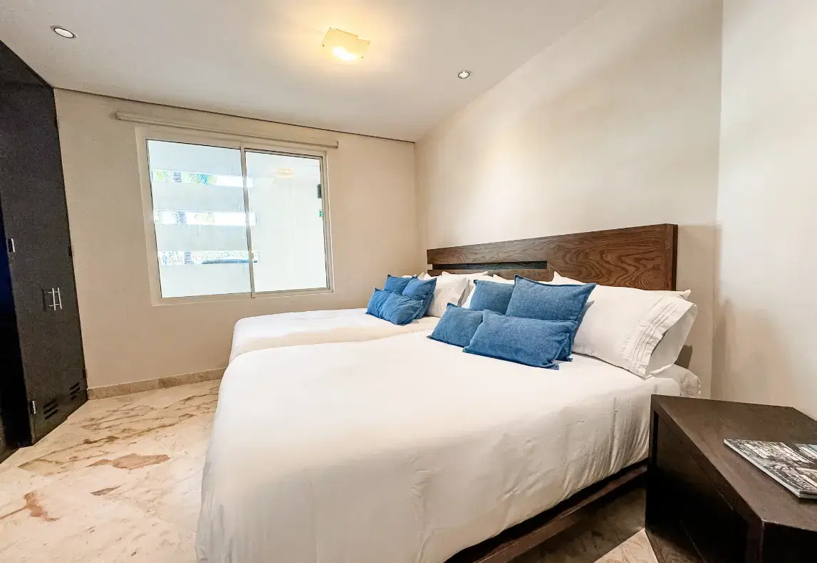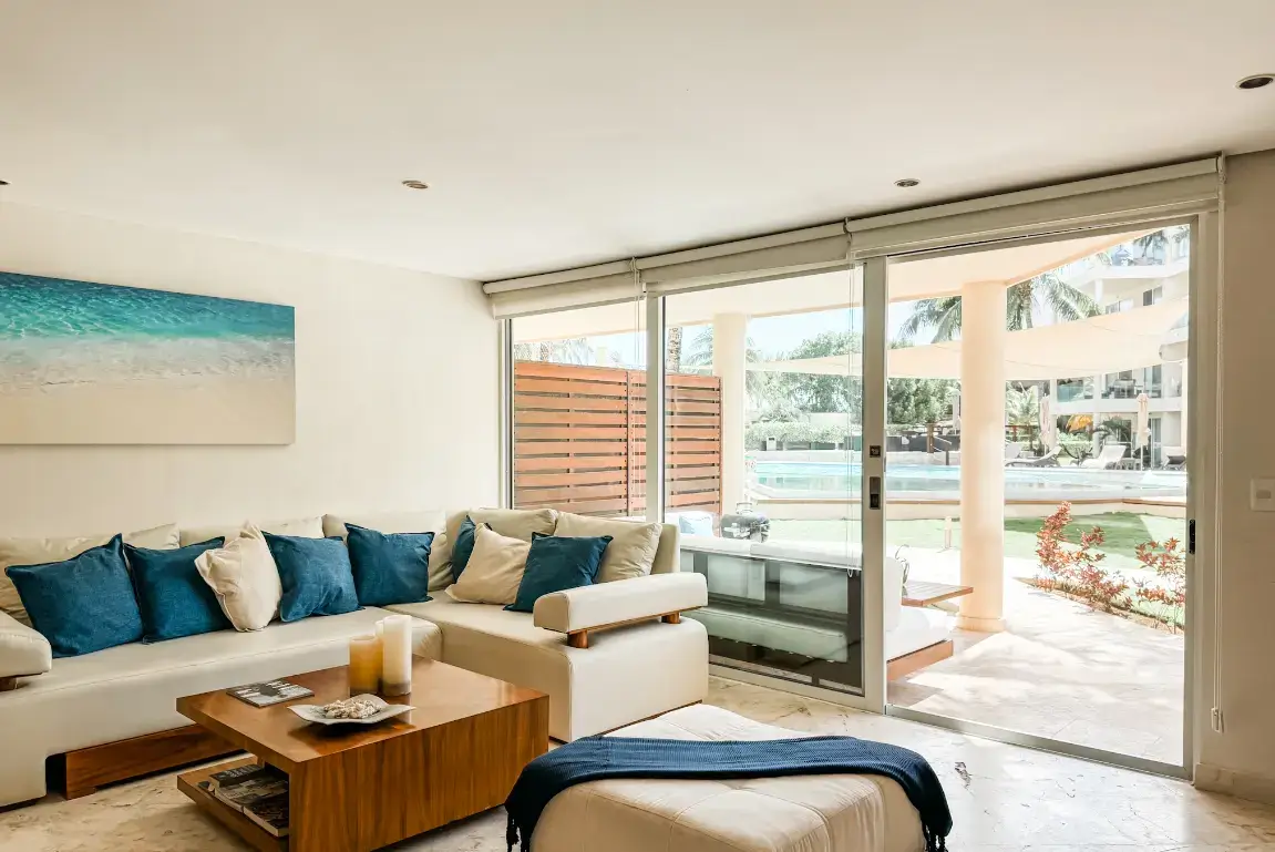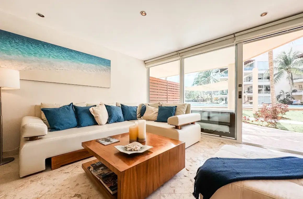 Wake up to the gentle sound of waves and step straight onto one of Playa del Carmen’s most beautiful beaches. Elements 818 is true beachfront luxury: 1,200 sq ft of sophisticated, marble-floored living space, massive floor-to-ceiling windows framing endless turquoise ocean views, and your own private terrace right on the sand — the ultimate front-row seat to the Caribbean.