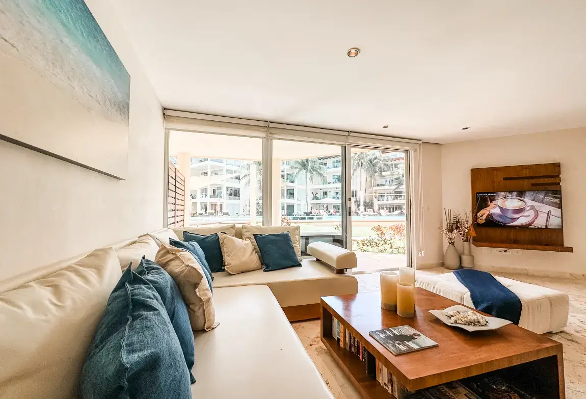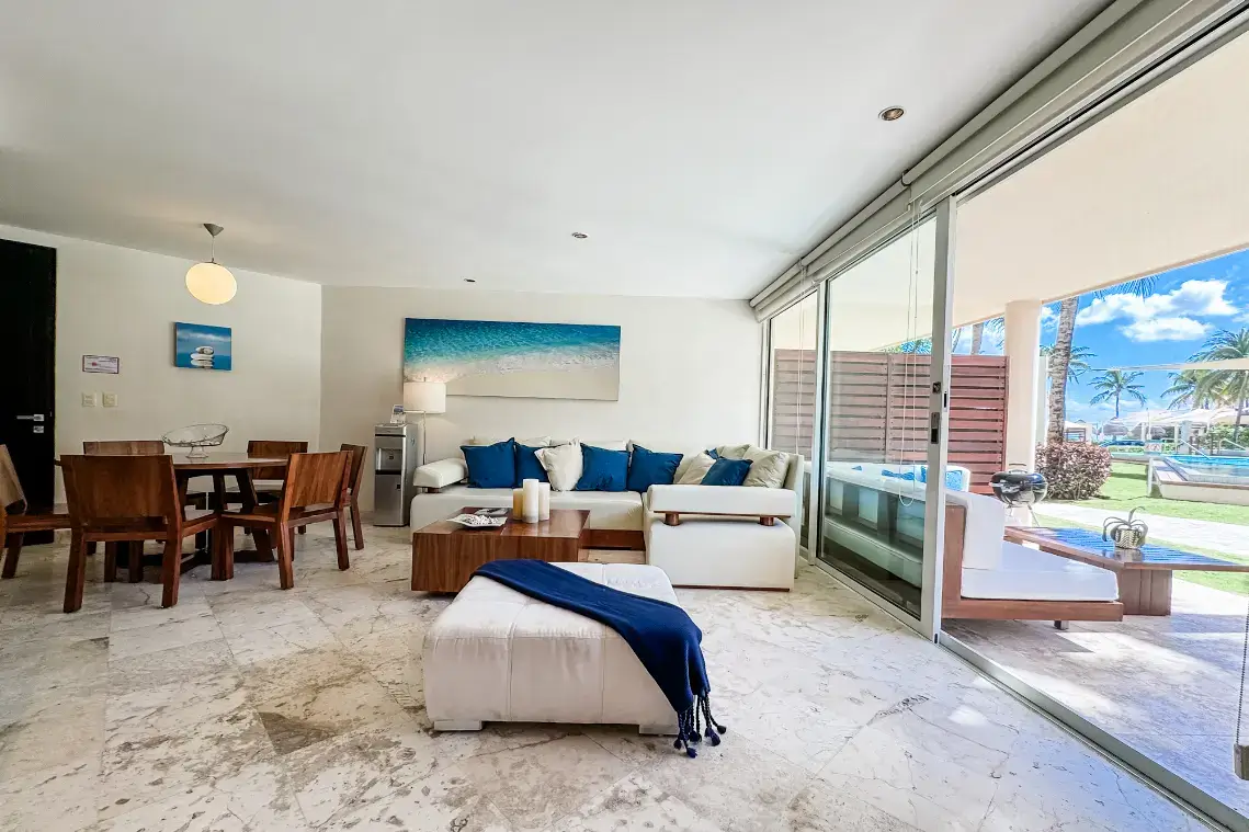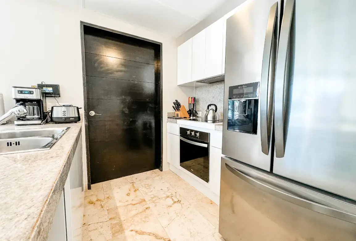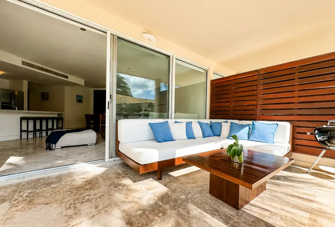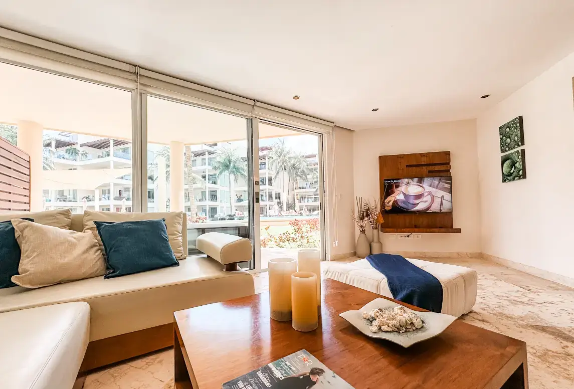 Wake up to the gentle sound of waves and step straight onto one of Playa del Carmen’s most beautiful beaches. Elements 818 is true beachfront luxury: 1,200 sq ft of sophisticated, marble-floored living space, massive floor-to-ceiling windows framing endless turquoise ocean views, and your own private terrace right on the sand — the ultimate front-row seat to the Caribbean.