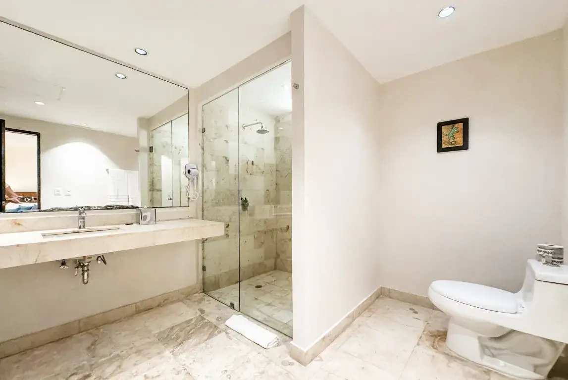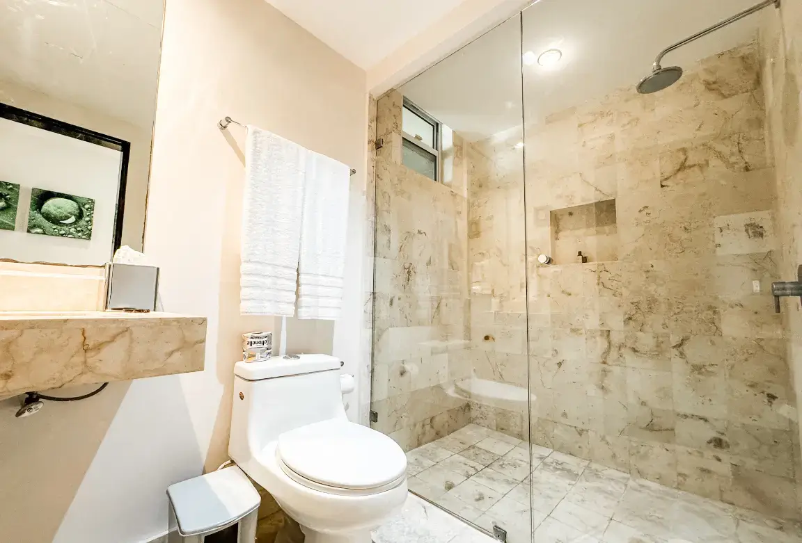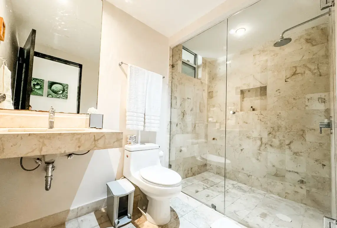 - Second Bedroom – King bed (or 2 twin beds configurable), full marble en-suite bathroom