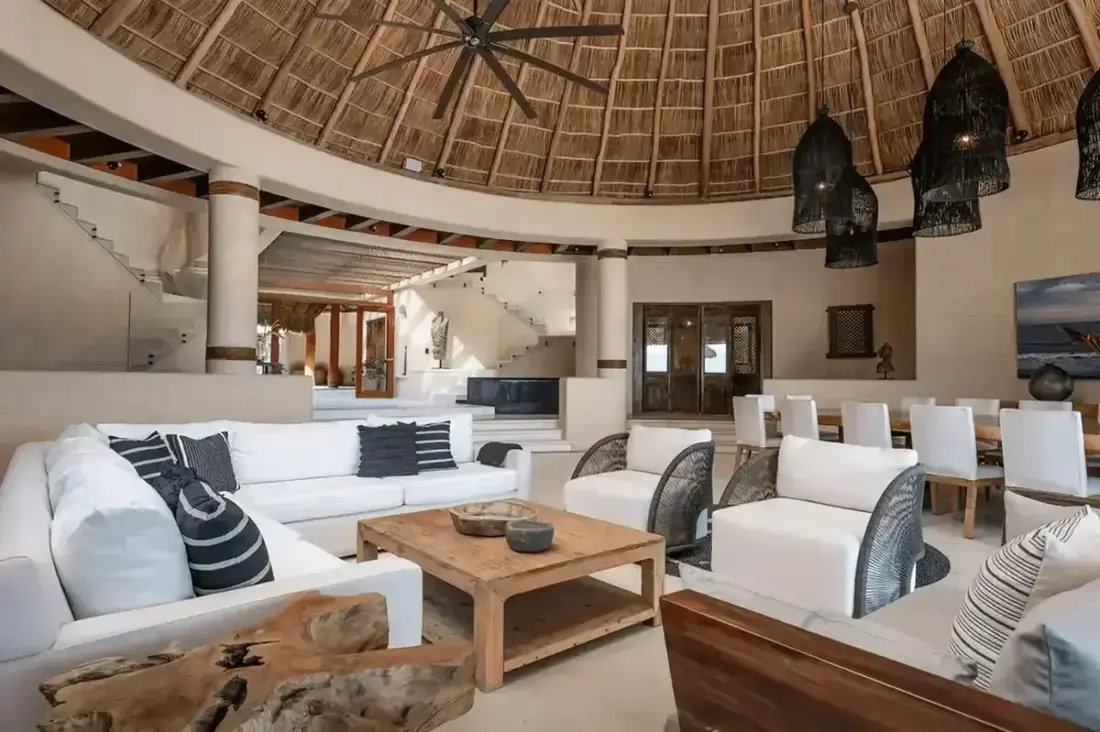 Welcome to Faro House Punta Mita, a spectacular 18,000 sq. ft. beachfront villa that redefines barefoot luxury on the pristine shores of Punta Mita. Designed for unforgettable gatherings, this 10-bedroom oceanfront estate accommodates up to 26 guests in exceptional comfort and style. Enjoy exclusive Premier Membership access to Club Punta Mita, world-class surf right out front, and full 5-star service from a dedicated team of 12 — including private chef, concierge, butlers, and housekeepers.