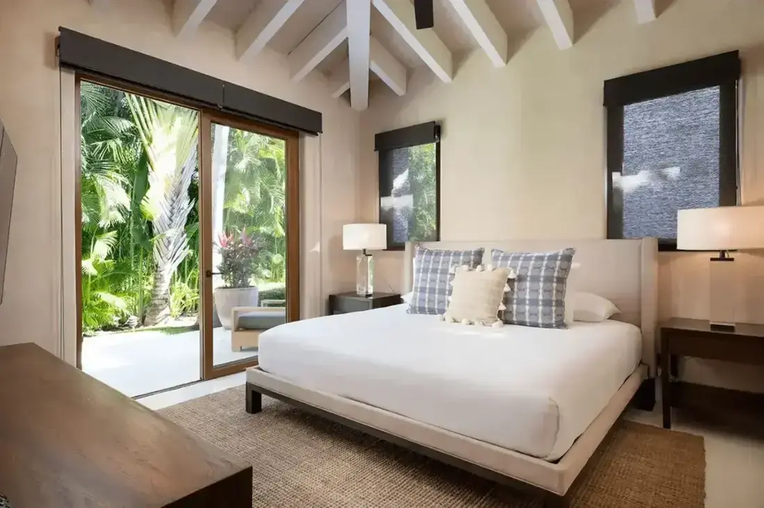 - Patron Guest Suite – King bed, dual vanity, pool & garden views