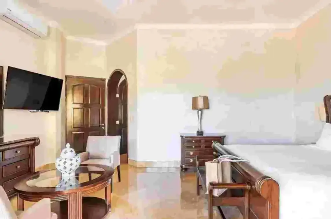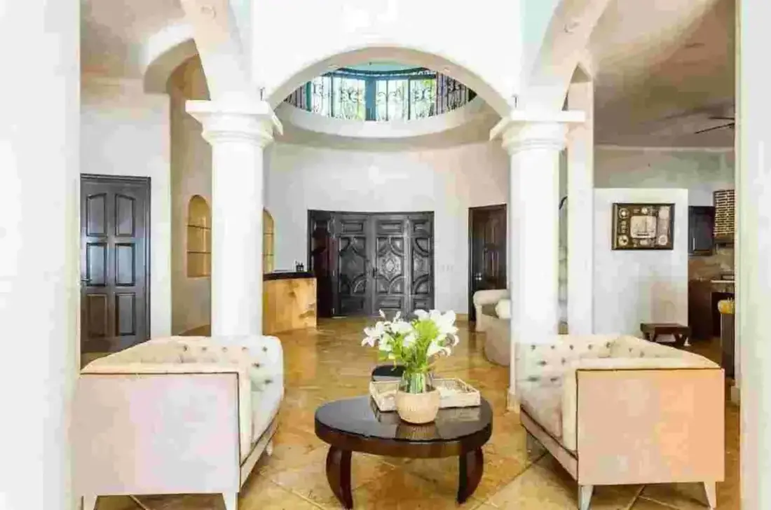 The villa’s expansive layout wraps around a central pool and garden courtyard, creating a large, fully private oasis for relaxation and gatherings. With 8 sumptuous bedrooms in the main hacienda (7 with king-size beds) and two additional suites in a separate guest house, Hacienda Soliman comfortably accommodates up to 24 guests — making it ideal for large family vacations, group getaways, wellness retreats, or milestone celebrations.