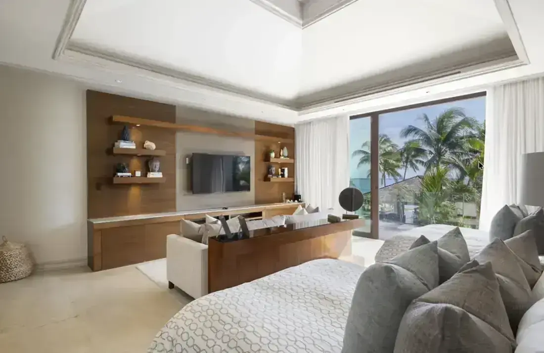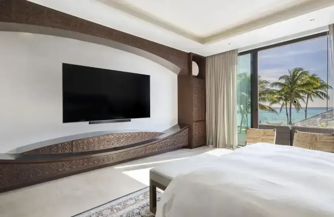 • Bedroom 3 (First Floor) – Queen bed, tub + shower, electric curtains, mini-fridge, safe, ocean view