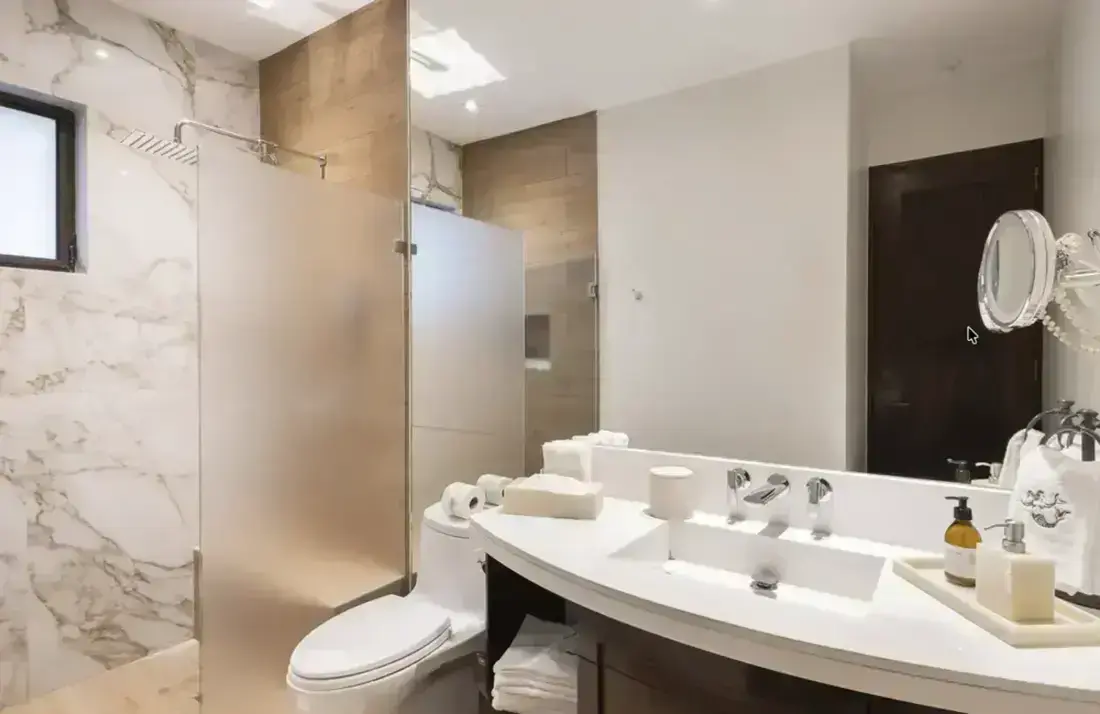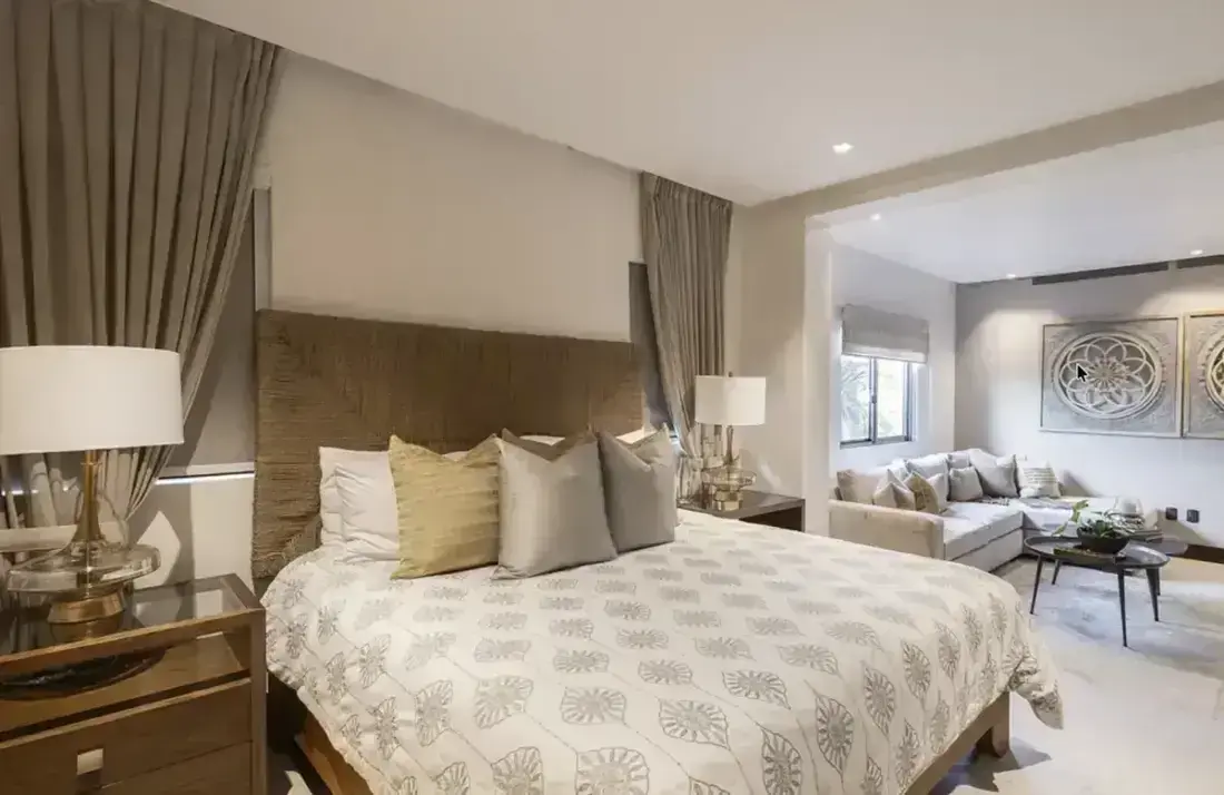 • Bedroom 7 (Ground Floor) – King bed, walk-in closet, dual vanity, electric curtains, tub + shower