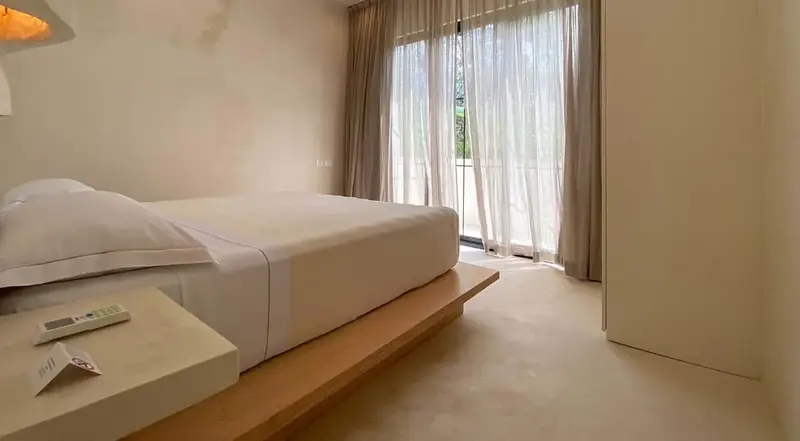 1 Single bed (by request), King size bed, Air conditioning, Ceiling fan, Ensuite bathroom with outdoor glass shower, Safety box, Satellite TV, Wifi access