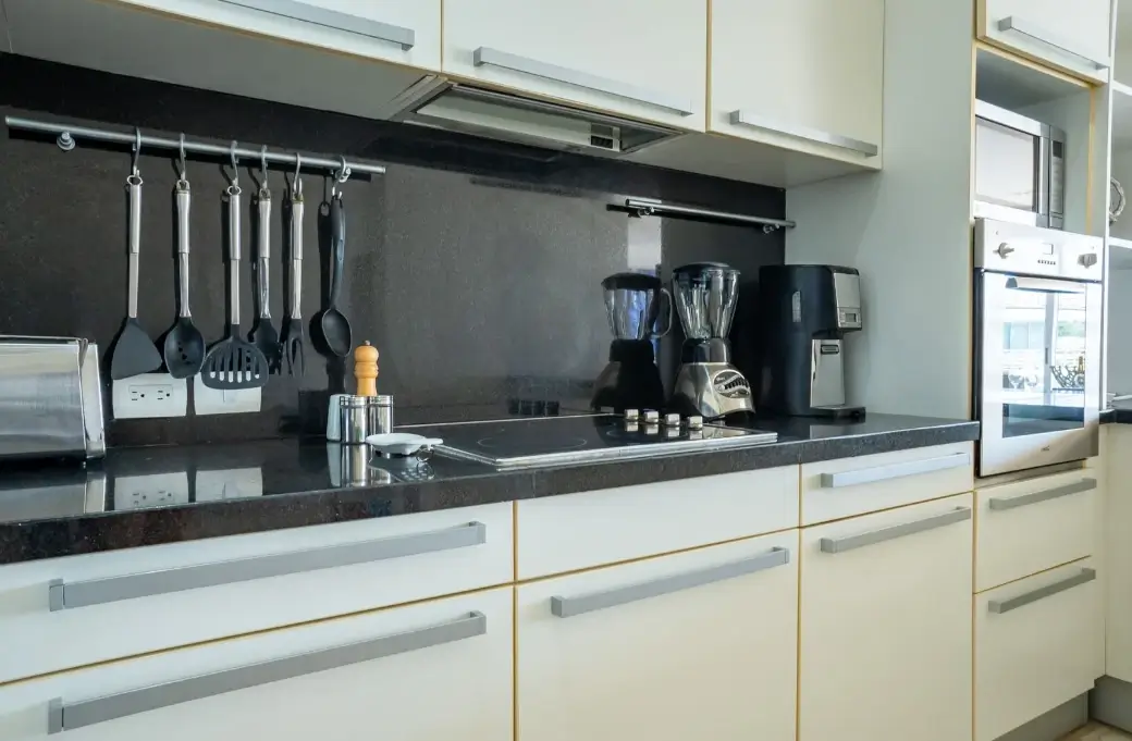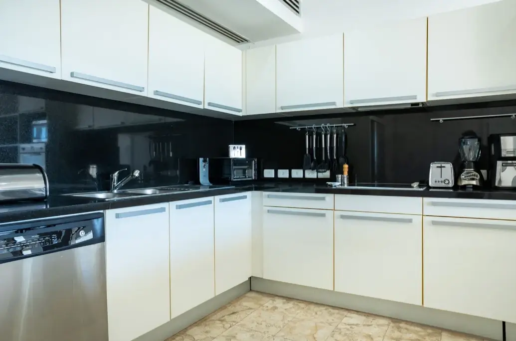 Fully equipped kitchen (granite island, stainless steel appliances, dishwasher, coffee maker, toaster, blender)