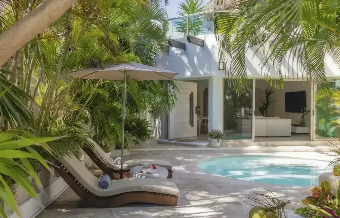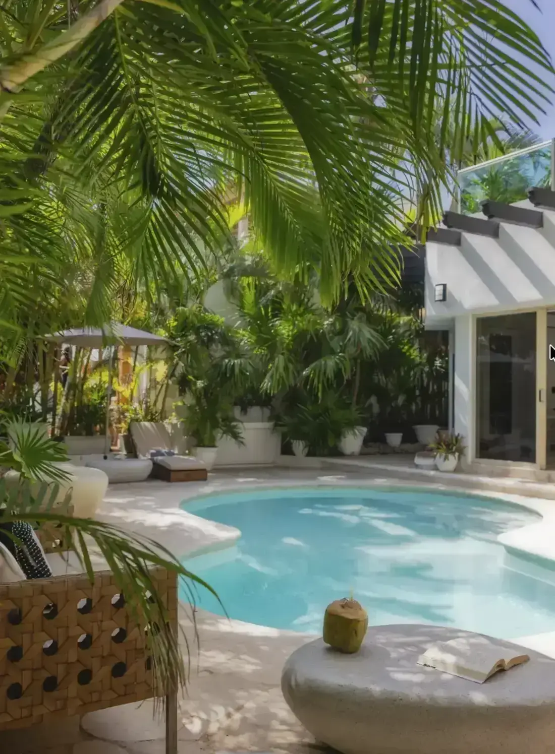 Nikki House combines elegant Mexican-style design with modern sophistication. The villa features a private pool and garden, a fully equipped gourmet kitchen, spacious living and dining areas, and a rooftop terrace perfect for stargazing or enjoying distant views of Cozumel. Relax in the sauna, host an alfresco barbecue, or simply lounge on your private stretch of beach with the cool ocean breeze.