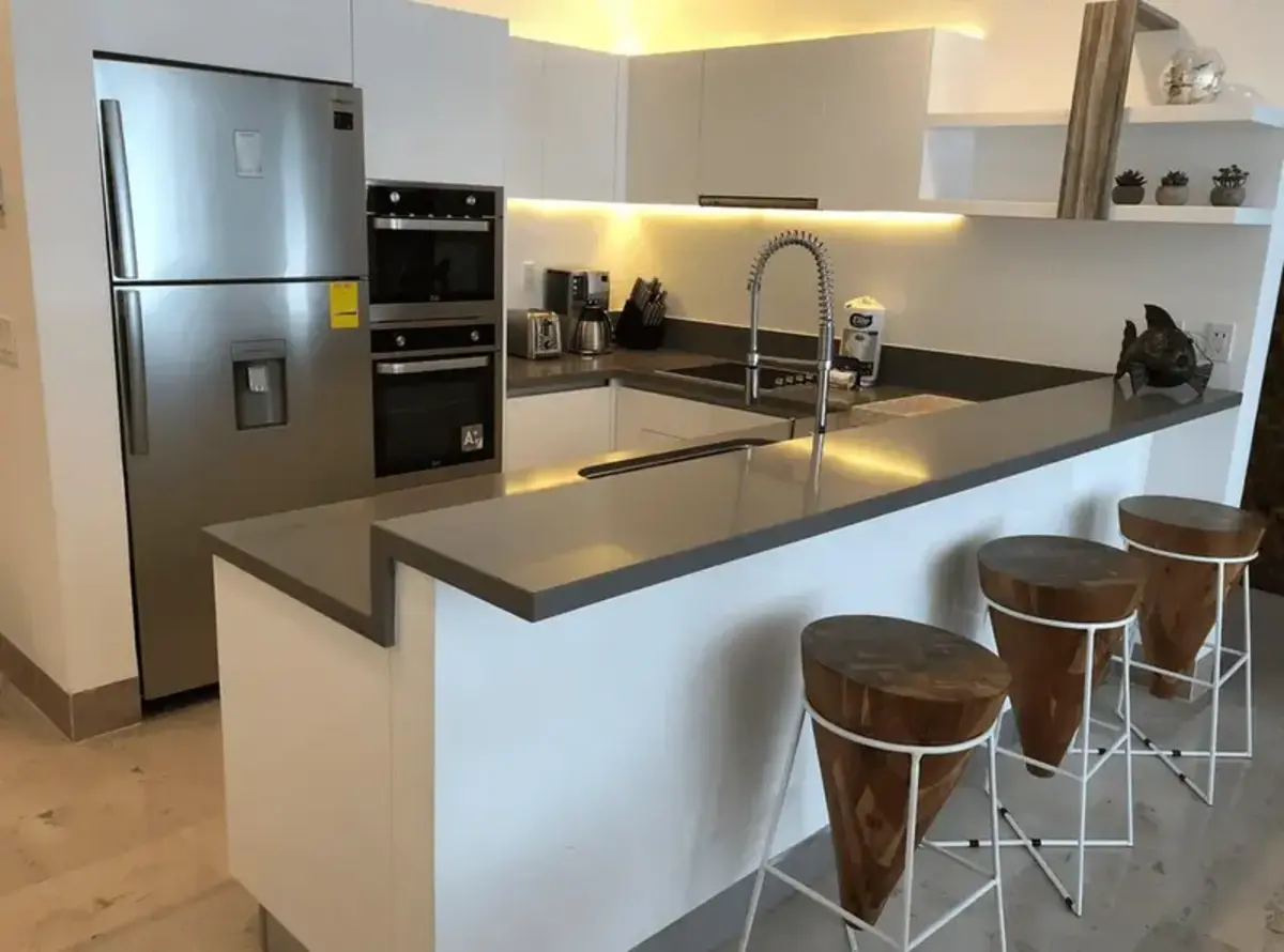 Experience the enchantment of Oceana Residences in Playa Mamitas, one of Playa del Carmen’s most captivating locations. Oceana Residences 2 Bdrs Jacuzzi is your private sanctuary, just steps from the sun-kissed white sands and turquoise waters of the Caribbean, while remaining immersed in the vibrant energy of 5th Avenue. Gaze across the shimmering sea to the majestic island of Cozumel on the horizon.