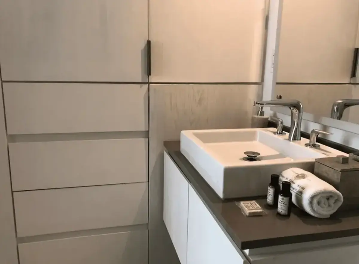 This elegant apartment features two immaculate bedrooms, each with its own en-suite bathroom, perfect for two couples or a small family. Air-conditioned comfort, ceiling fans, luxurious 1500-thread-count sheets, ultra-soft high-quality duvets, and blackout curtains ensure restful nights. Families with little ones will appreciate the baby package available upon request (crib, high chair, bathtub, toys).