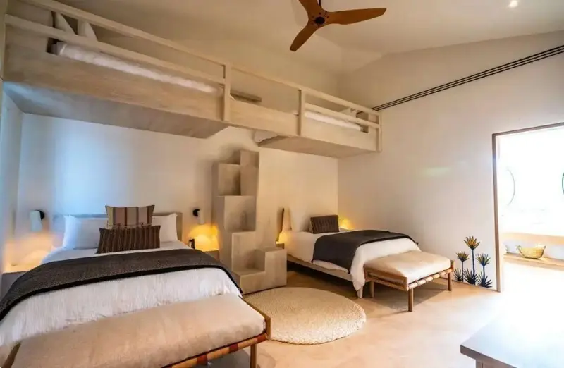 Bedroom 7 (Bunk Room) – Two queen beds + two twin beds, stand-alone shower (ideal for kids/teens)
