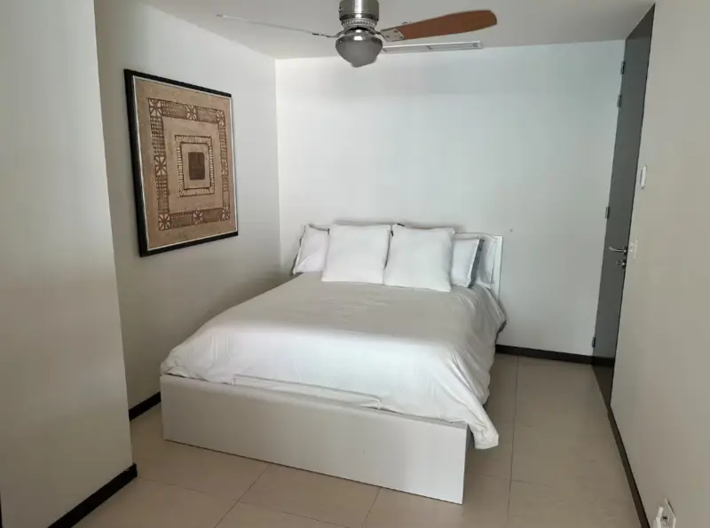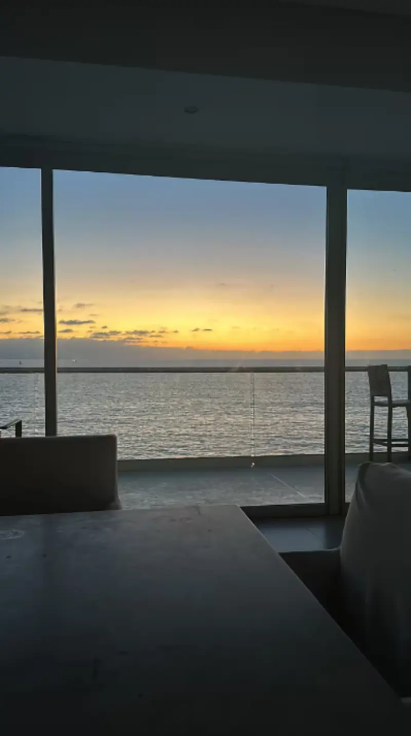 Bright, open-plan living & dining area with floor-to-ceiling windows flooding the space with natural light and ocean views. Fully equipped modern kitchen (stove, oven, microwave, full-size fridge, Nespresso, toaster, blender, all cookware & dishes). In-unit washer & dryer, A/C + ceiling fans throughout, high-speed Wi-Fi, smart TVs in living room and bedrooms.