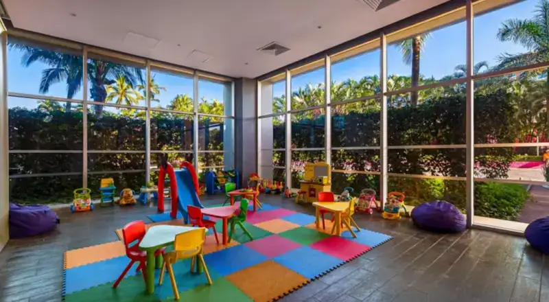 Entertainment & Leisure – Cinema, business center, beach game area, and toy library (Ludoteca) for guests of all ages.