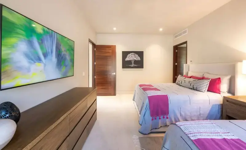 - Bedroom 3 – Two queen beds, shower