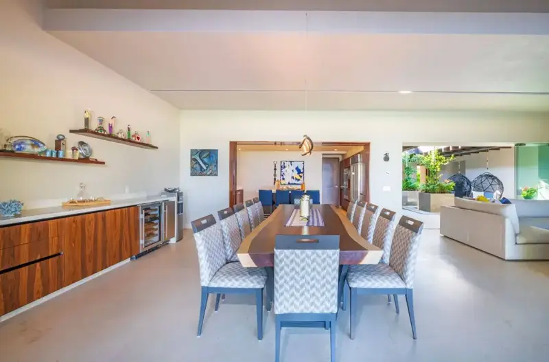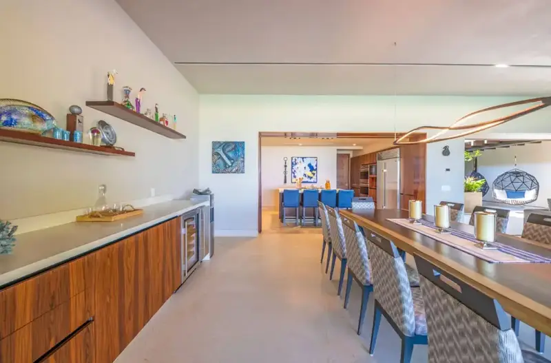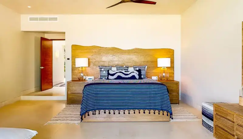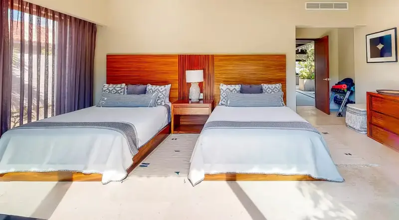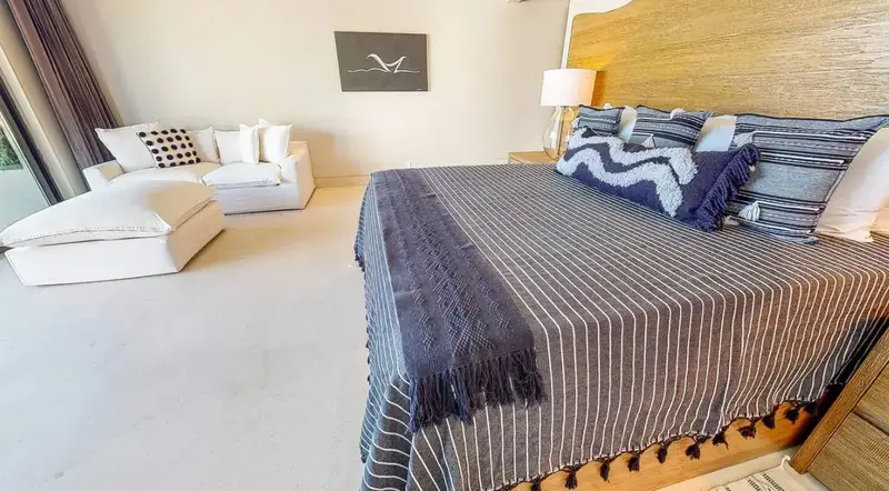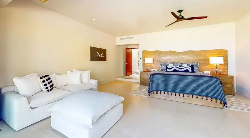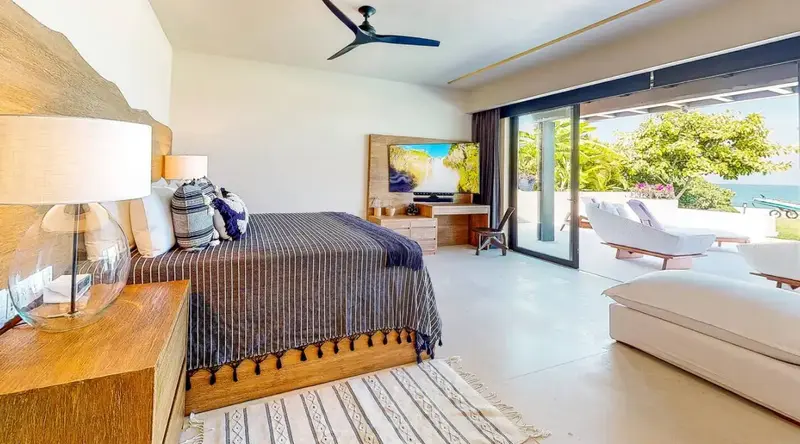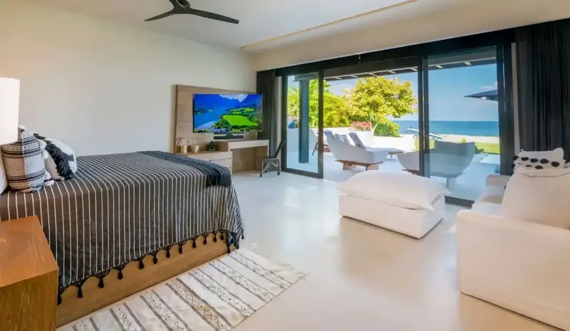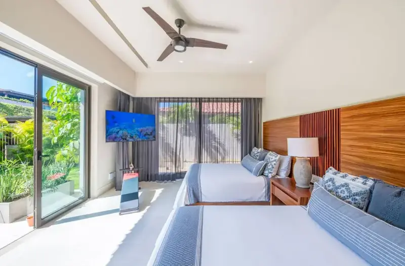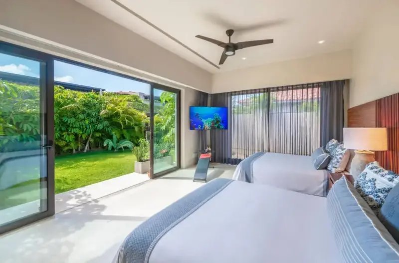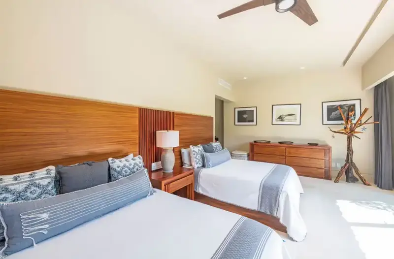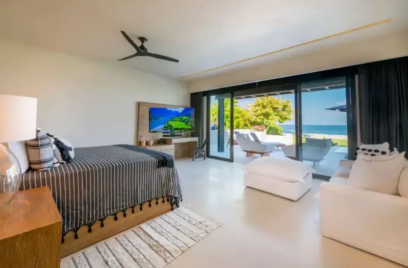 Step through retractable glass walls and onto the sand at Porta Fortuna Villa 4J Punta Mita, one of the rare direct oceanfront homes in Punta Mita’s prestigious Porta Fortuna community. Your private infinity pool and jacuzzi seem to merge with the Pacific horizon, while the legendary “Tail of the Whale” hole unfolds right before you. Sunrises blush the sky pink, sunsets ignite it in fiery reds—every moment feels like a living postcard.