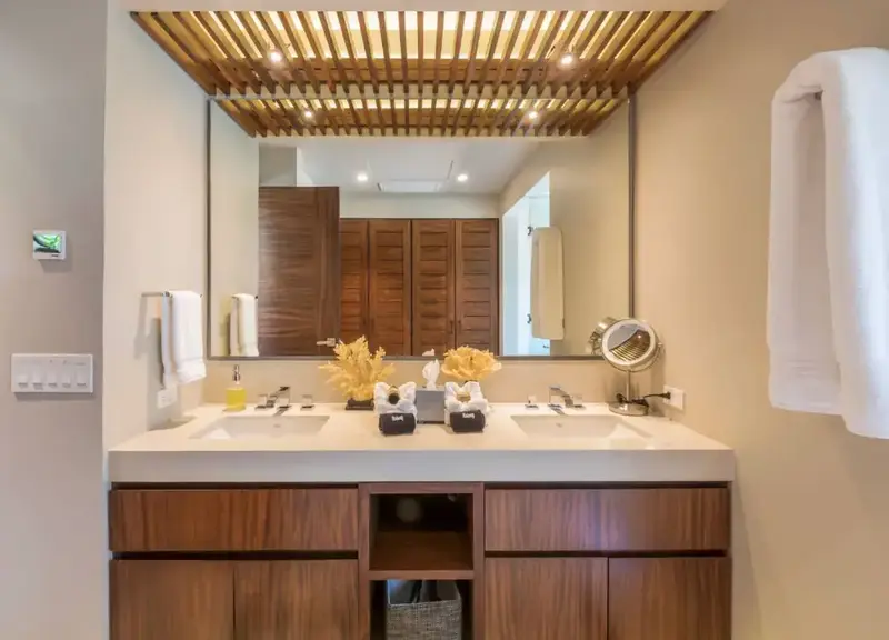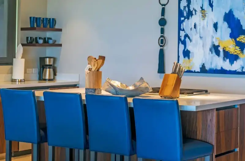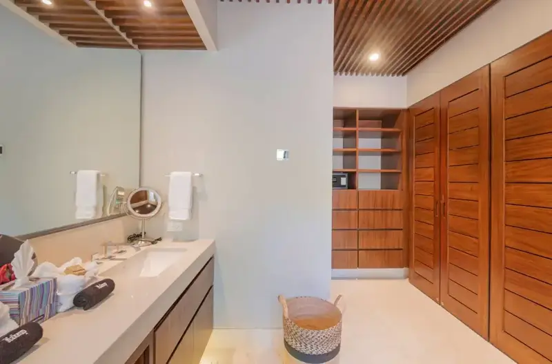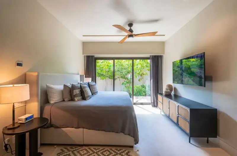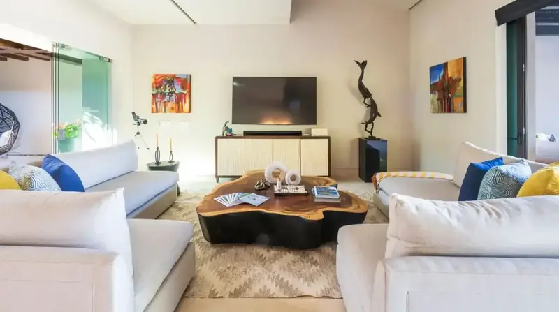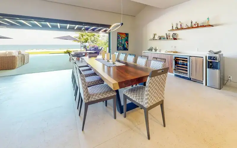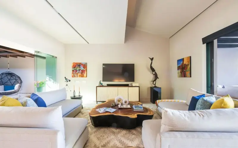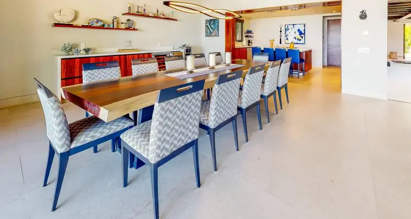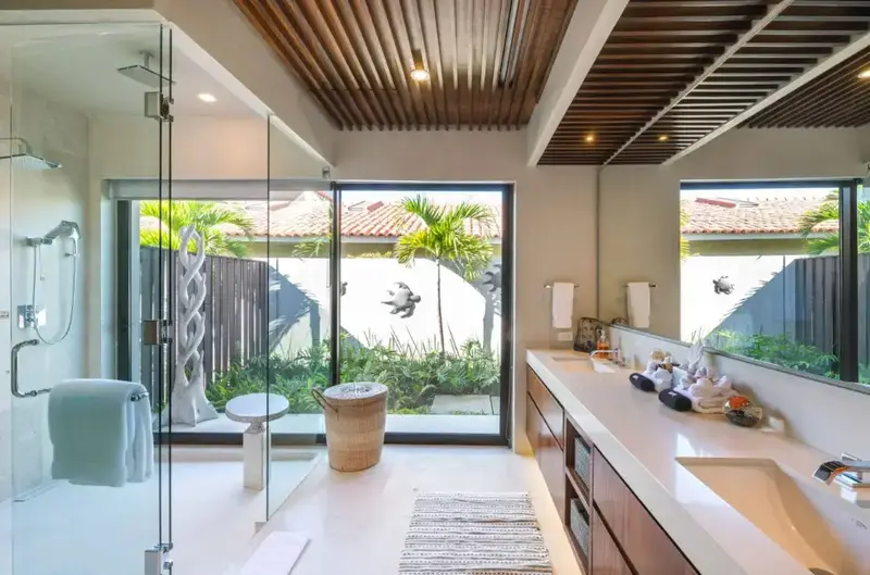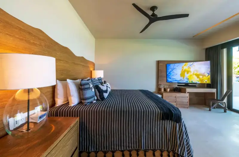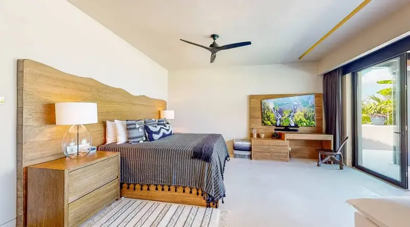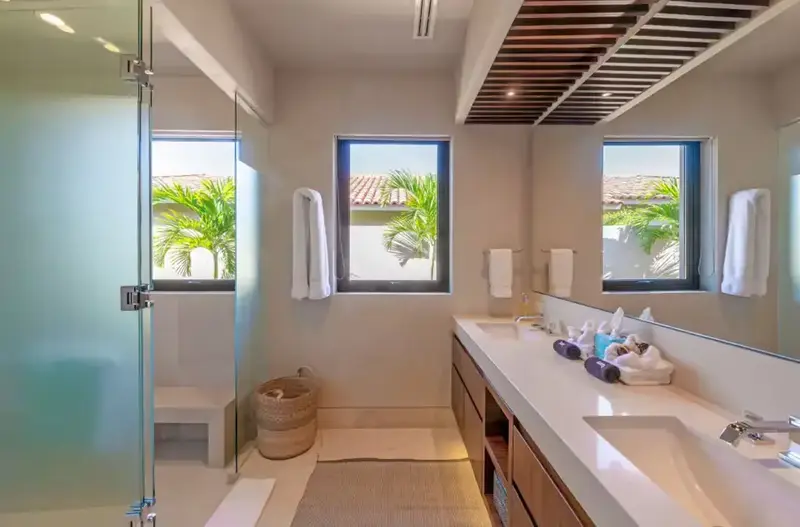 Step through retractable glass walls and onto the sand at Porta Fortuna Villa 4J Punta Mita, one of the rare direct oceanfront homes in Punta Mita’s prestigious Porta Fortuna community. Your private infinity pool and jacuzzi seem to merge with the Pacific horizon, while the legendary “Tail of the Whale” hole unfolds right before you. Sunrises blush the sky pink, sunsets ignite it in fiery reds—every moment feels like a living postcard.