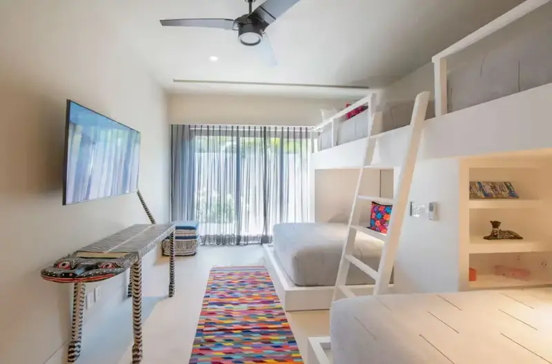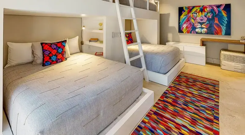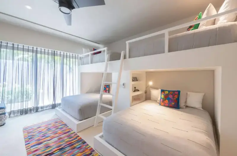 - Bedroom 5 – Two queen beds + two twin bunk beds, shower (ideal for kids/teens)