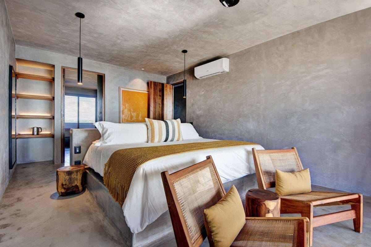 Each of the five beautifully appointed bedrooms exudes boutique hotel charm, with ocean views and access to shared or private balconies—perfect for savoring vibrant sunrises or tranquil sunsets.