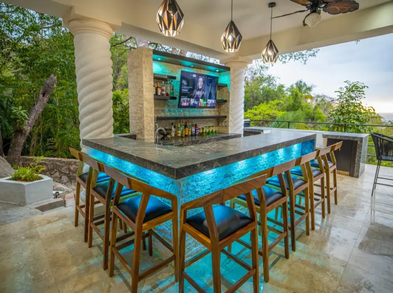 Tucked into a lush jungle canyon just 15 minutes south of Puerto Vallarta’s Romantic Zone, Treasure of the Sea is a breathtaking 8-bedroom private estate that feels like your own tropical resort. With dramatic bi-level heated pools cascading down the hillside, expansive terraces, and total seclusion inside the exclusive gated Sierra del Mar community, this villa is a repeat-guest favorite for family reunions, milestone birthdays, corporate retreats, and relaxed group getaways.
