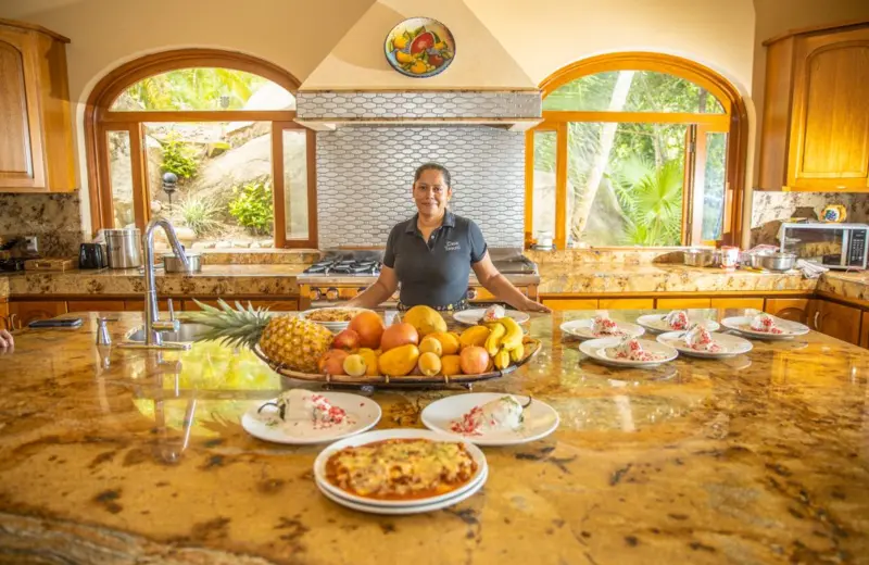 - Private chef preparing plated breakfast + dinner daily (groceries + beverages extra)