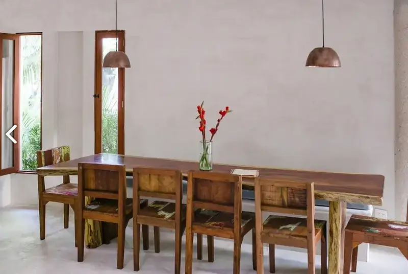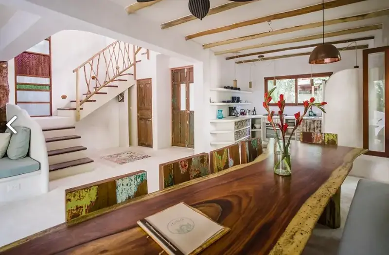 Retreat to tranquil beauty at Tulum Beach Home 3, a charming 3-bedroom beachfront villa enveloped by generous tree canopies in the heart of Tulum Beach. This peaceful oasis blends natural elements and artistic touches with the laid-back spirit of Tulum, offering a private sanctuary just steps from refreshing shared pools and the stunning white sands of the Caribbean.