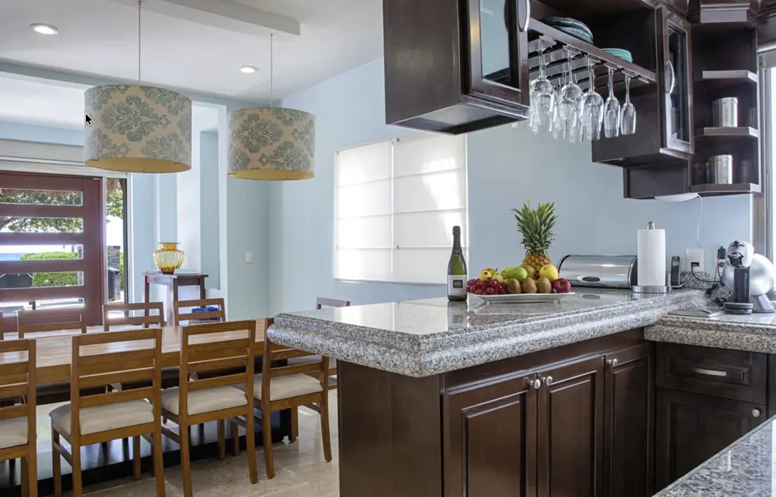 - Fully Equipped Gourmet Kitchen with Granite Counters, Island & Wine Cooler