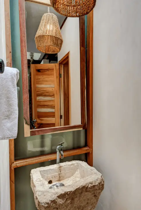 This 1,345 sq ft unique villa in the Mayan jungle presents contemporary architecture with local woods and stones, as well as detailed interior design. All of it harmonizes with the natural surroundings and creates a very special accommodation in Tulum.