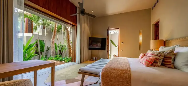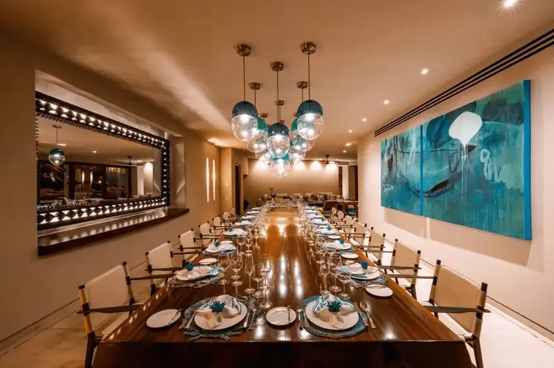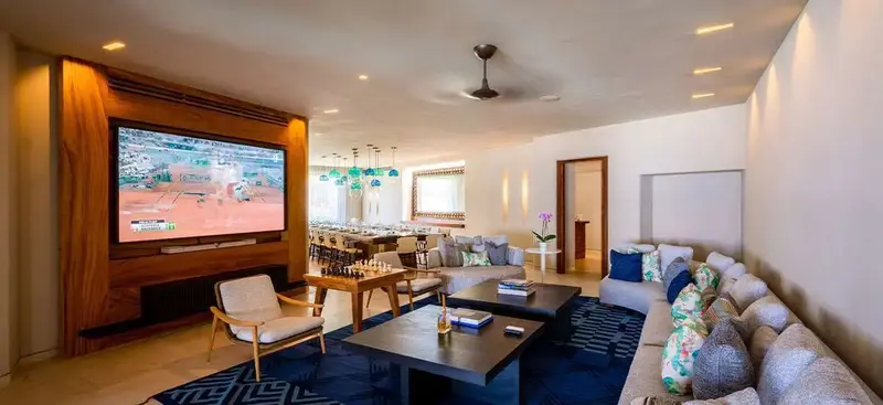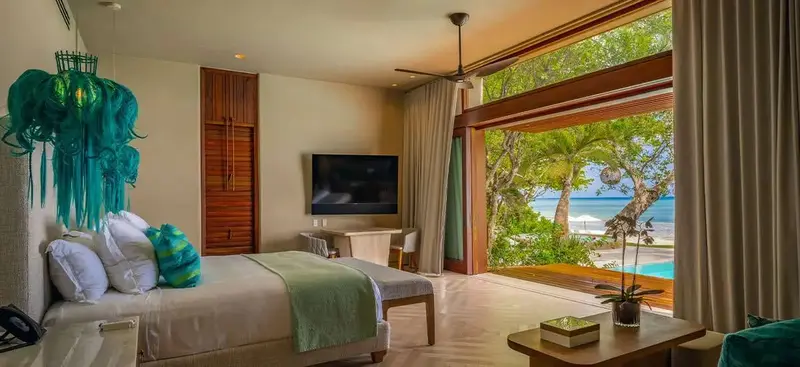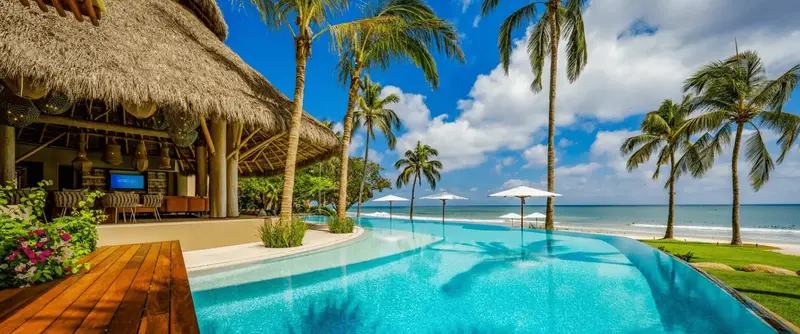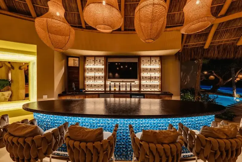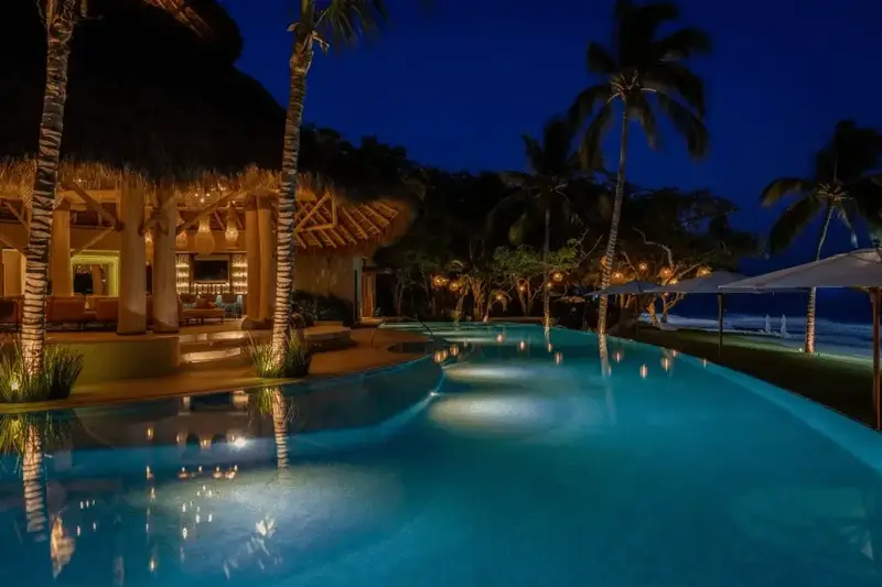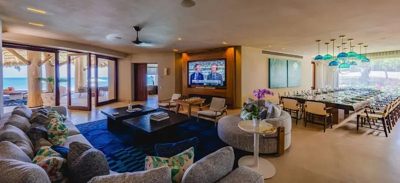 Vacation like a global elite: dive from your oceanfront bedroom into a massive heated infinity pool, screen blockbusters in a commercial-grade Dolby Atmos cinema, host under a grand alfresco palapa, or recharge in your private spa—elevated by a full staff of 10 and premier Punta Mita resort privileges.