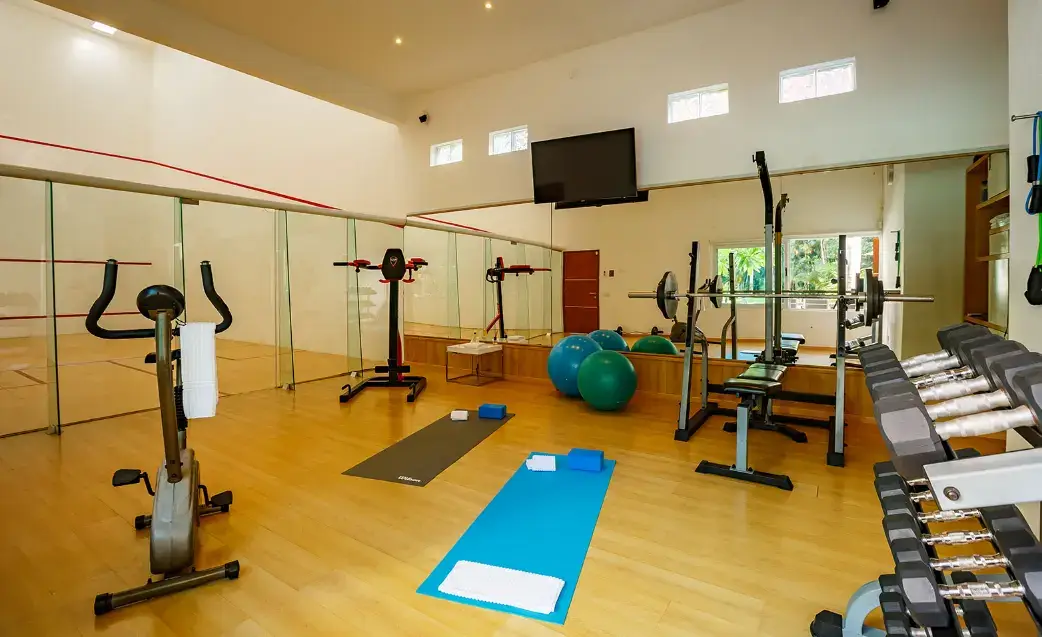 Gym • Squash court • Smart TVs • Wi-Fi • Computer & printer • Board games • Yoga mats • Cappuccino machine • Washer/dryer • Air conditioning throughout
