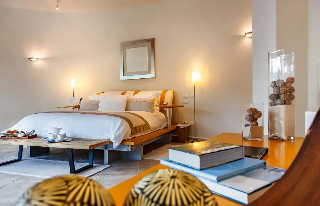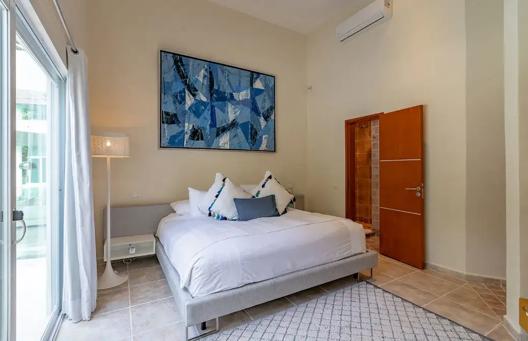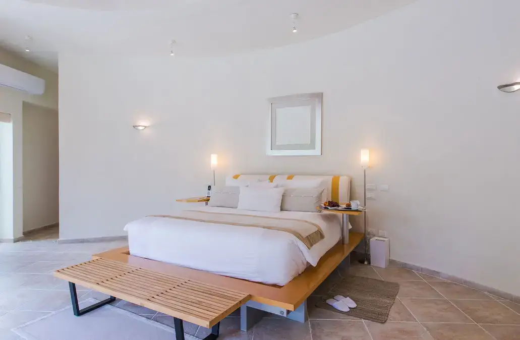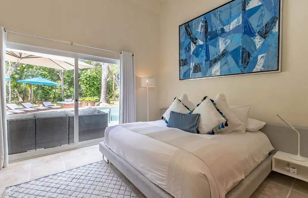Bedroom 4 (Ground Floor) – King bed with direct pool and terrace access.